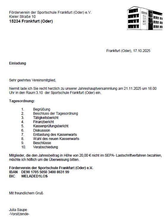 Die Schulleitung der Sportschule Frankfurt (Oder)
