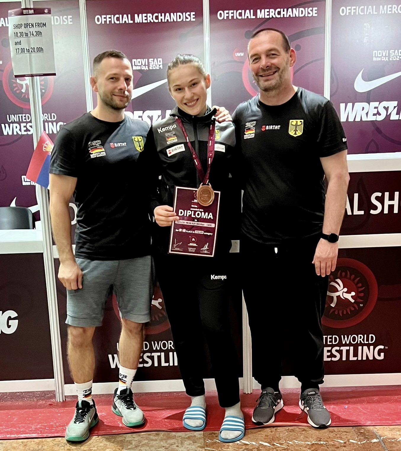 Nach Siegen gegen Nord Mazedonien und Ungarn unterlag sie knapp im Halbfinale der späteren 2. platzierten Gegnerin aus der Türkei. Den Kampf um Platz drei beendete Feenja mit einem Schultersieg und errang sich so ihre erste internationale Medaille 🥉.